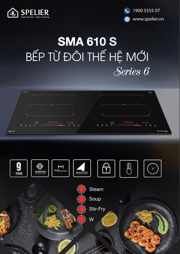 • 2 vùng nấu cảm ứng từ công suất 2600 W booster đạt công suất 2900 W • Mặt kính “Ceramic” M - millennium, công nghệ in gương ( Mirror printing ) tăng độ sang trọng và không bị mờ theo thời gian sử dụng, mài vát 4 cạnh bo viền nhôm Aluminium cao cấp • Bụng nhựa chống cháy được thiết kế riêng biệt độc đáo và logo SPELIER được dập nổi khẳng định hàng chính hãng • Quạt sò thế hệ mới tăng khả năng tản nhiệt mà hoạt động cực kỳ êm ái • Toàn bộ mạch điện được phủ màu đen ánh kim với logo SPELIER in trên mạch màu trắng khẳng định hàng chính hãng và không thể lẫn với các sản phẩm khác. • Công nghệ “Dual core inverter” siêu tiết kiệm năng lượng • Hệ thống điều khiển “Slider Control” cảm ứng điện cực, nhanh và chính xác • Hai bảng điều khiển riêng biệt • Chức năng Booster giúp nấu ăn nhanh • Chức năng tạm dừng “Stop and Go” khi đang nấu • Công nghệ khử nhiễu từ EMC bảo vệ các thiết bị điện xung quanh • Tính năng ủ ấm, rã đông linh hoạt • Tính năng sôi liu riu ở mức công suất thấp • Tính năng hẹn giờ trên mỗi vùng nấu • Tính năng tự nhận diện vùng nấu |