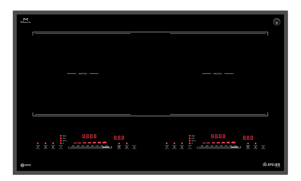 • 2 vùng nấu cảm ứng từ công suất 2400 W booster đạt công suất 2900 W • Mặt kính “Ceramic” M - millennium, công nghệ in gương ( Mirror printing ) tăng độ sang trọng và không bị mờ theo thời gian sử dụng, mài vát 4 cạnh bo viền nhôm Aluminium cao cấp • Bụng nhựa chống cháy được thiết kế riêng biệt độc đáo và logo SPELIER được dập nổi khẳng định hàng chính hãng • Quạt sò thế hệ mới tăng khả năng tản nhiệt mà hoạt động cực kỳ êm ái • Toàn bộ mạch điện được phủ màu đen ánh kim với logo SPELIER in trên mạch màu trắng khẳng định hàng chính hãng và không thể lẫn với các sản phẩm khác. • Công nghệ “Dual core inverter” siêu tiết kiệm năng lượng • Hệ thống điều khiển “Slider Control” cảm ứng điện cực, nhanh và chính xác • Hai bảng điều khiển riêng biệt • Chức năng Booster giúp nấu ăn nhanh • Chức năng tạm dừng “Stop and Go” khi đang nấu • Công nghệ khử nhiễu từ EMC bảo vệ các thiết bị điện xung quanh • Tính năng ủ ấm, rã đông linh hoạt • Tính năng sôi liu riu ở mức công suất thấp • Tính năng hẹn giờ trên mỗi vùng nấu • Tính năng tự nhận diện vùng nấu |