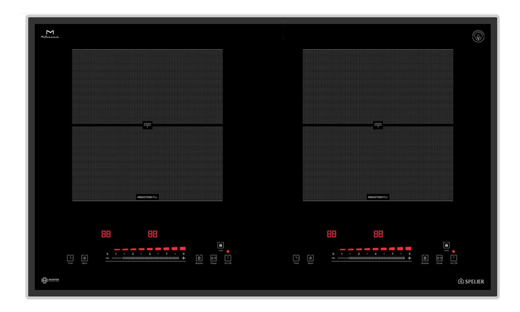 • 2 vùng nấu cảm ứng từ công suất 2200 W booster đạt công suất 2400 W • Mặt kính “Ceramic” M - millennium, công nghệ in gương ( Mirror printing ) tăng độ sang trọng và không bị mờ theo thời gian sử dụng, mài vát 4 cạnh bo viền nhôm Aluminium cao cấp • Bụng nhựa chống cháy được thiết kế riêng biệt độc đáo và logo SPELIER được dập nổi khẳng định hàng chính hãng • Quạt sò thế hệ mới tăng khả năng tản nhiệt mà hoạt động cực kỳ êm ái • Toàn bộ mạch điện được phủ màu đen ánh kim với logo SPELIER in trên mạch màu trắng khẳng định hàng chính hãng và không thể lẫn với các sản phẩm khác. • Công nghệ “Dual core inverter” siêu tiết kiệm năng lượng • Hệ thống điều khiển “Slider Control” cảm ứng điện cực, nhanh và chính xác • Hai bảng điều khiển riêng biệt • Chức năng Booster giúp nấu ăn nhanh • Chức năng tạm dừng “Stop and Go” khi đang nấu • Công nghệ khử nhiễu từ EMC bảo vệ các thiết bị điện xung quanh • Tính năng ủ ấm, rã đông linh hoạt • Tính năng sôi liu riu ở mức công suất thấp • Tính năng hẹn giờ trên mỗi vùng nấu • Tính năng tự nhận diện vùng nấu |