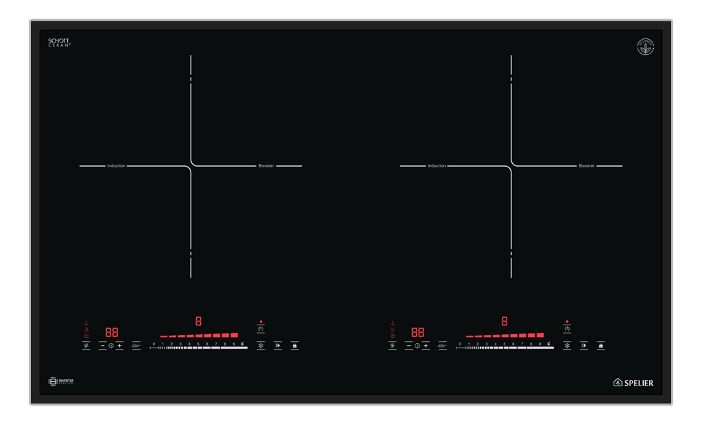 • 02 vùng nấu cảm ứng từ công suất 2600 W Booster lên đến 2950W • Mặt kính SCHOTT CERAN® Made in Germany, in hai màu độc đáo, mài vát 4 cạnh, bo viền nhôm Aluminium cao cấp • Công nghệ “Dual core Inverter” tiết kiệm điện tối ưu • Công nghệ “ECO green technology” siêu tiết kiệm năng lượng • Hệ thống điều khiển “Slider Control” cảm ứng điện cực nhanh và chính xác • Hai bảng điều khiển riêng biệt • Chức năng Booster giúp nấu ăn nhanh • Tính năng tạm dừng “Stop and Go” khi đang nấu • Công nghệ khử nhiễu từ bảo vệ các thiết bị điện • Tính năng ủ ấm, rã đông linh hoạt • Tính năng hẹn giờ trên mỗi vùng nấu • Tính năng tự nhận diện vùng nấu |